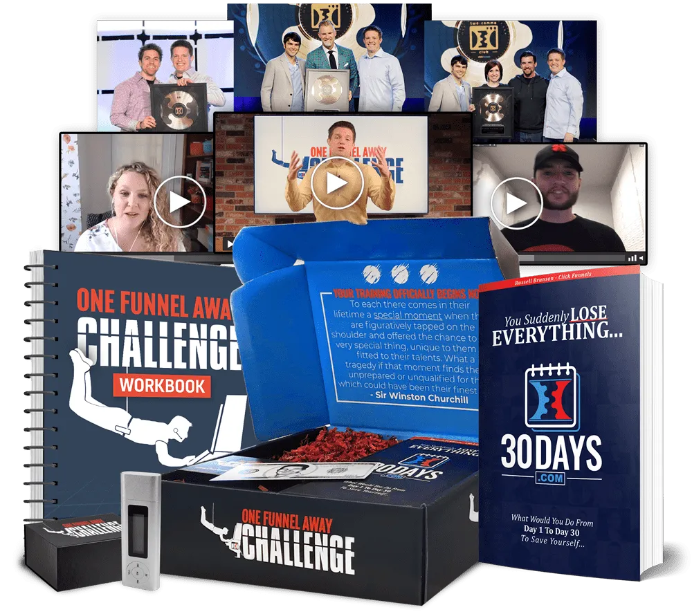 Join The ChallengeThe One Funnel Away Challenge is a 30-day training programme designed by Russell Brunson, co-founder of ClickFunnels, that teaches you how to build a sales funnel from scratch and launch it by day 30.